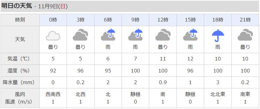 明日は残念ですが雨予報😭