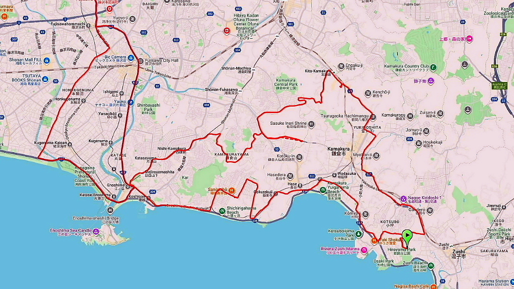 セブンイレブン藤沢亀井野店 ⇒ 珊瑚礁本店(昼食10時到着~10時30分開店) ⇒ 披露山公園(12時20分) ⇒ 浄智寺(13時30分)