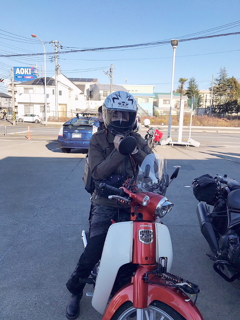 こばりえちゃん、ヘルメット被るの忘れていた😅