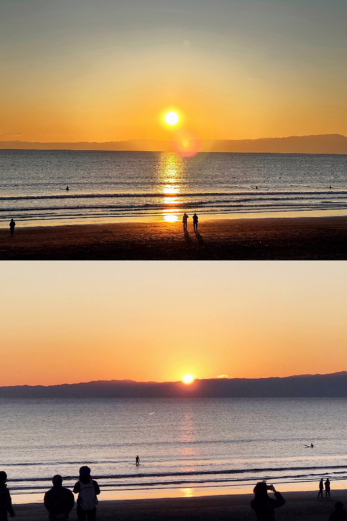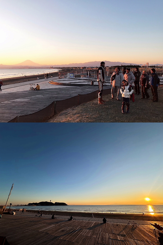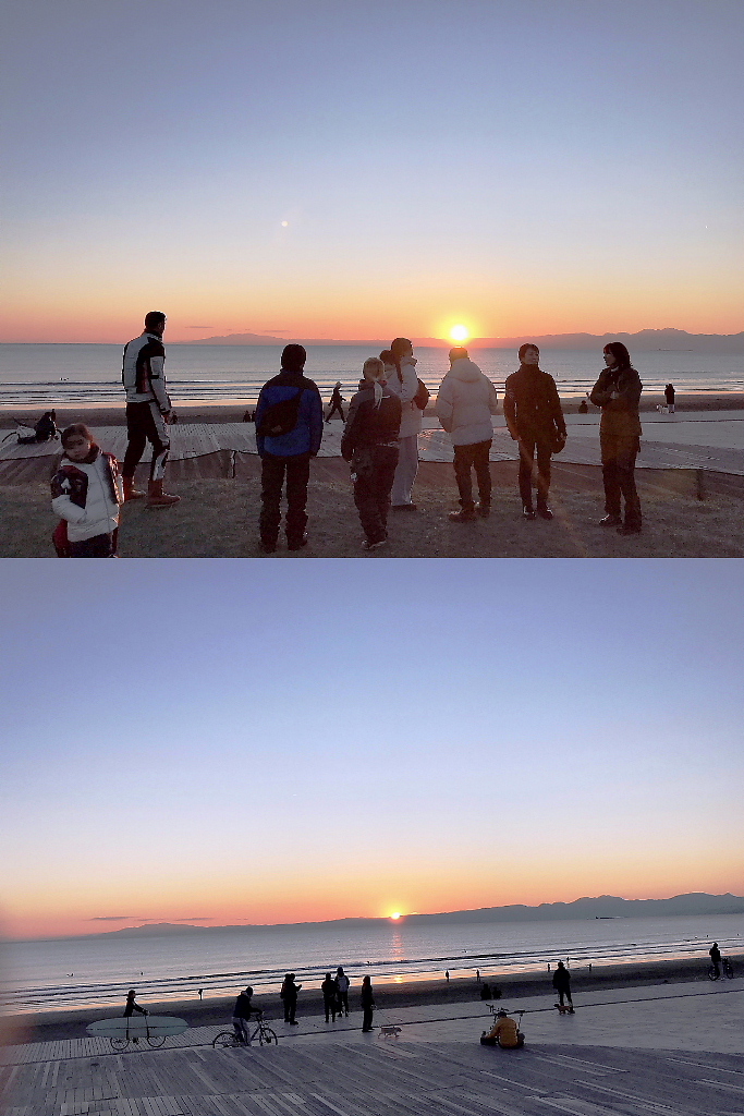 夕日を浴びながら日の入りを待ちます