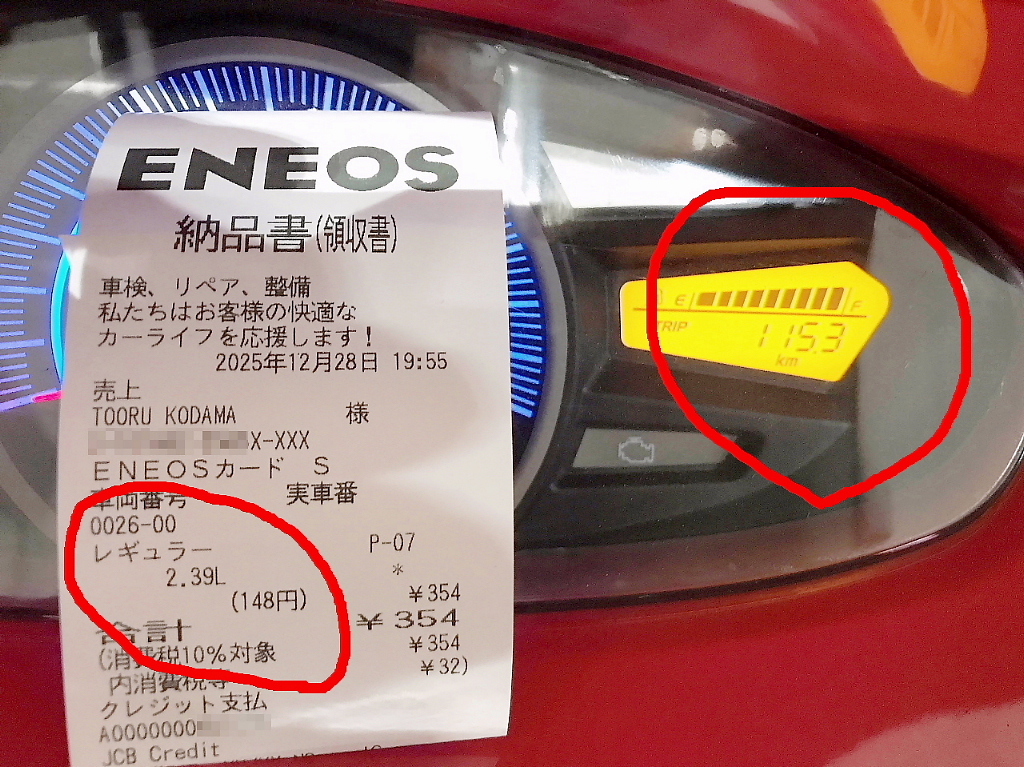 会長のPCX150、115,3km、2,39㍑、リッター48.2km/㍑